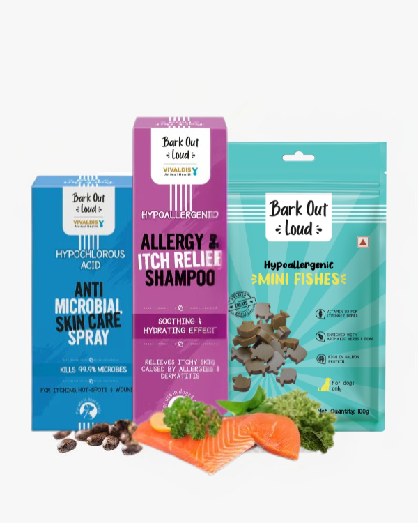 Say goodbye to allergies and itchy skin with Bark Out Loud's Hypoallergenic combo. Order now and give your furry friend the gift of healthy skin and a happy life.