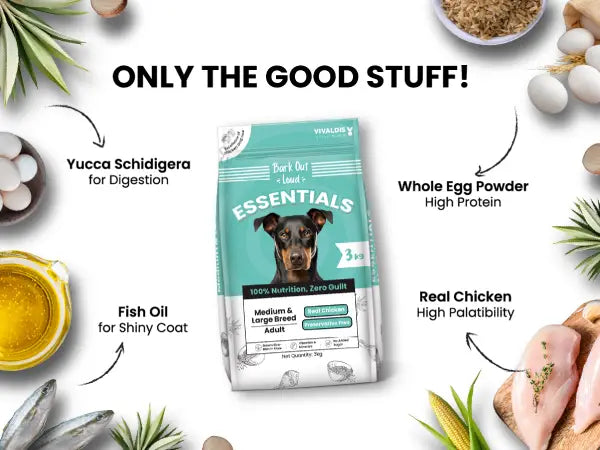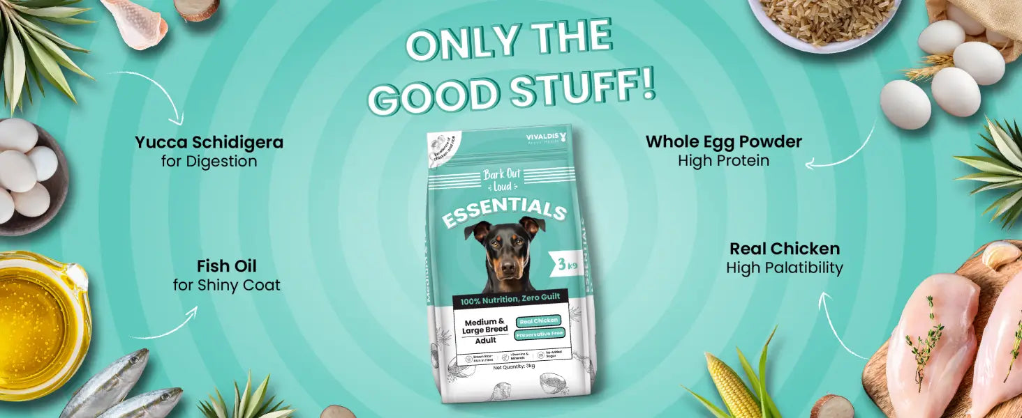 Bark Out Loud’s dedication to excellence ensures that every bag of our essentials adult dog food meets the highest standards. Recommended by veterinarians and cherished by pets, our dog food is perfect for medium- and large-breed adults. Give your dog the nutrition they deserve with Bark Out Loud’s Essentials Range.