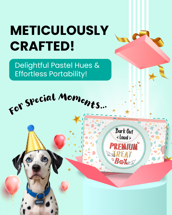 Each treat is thoughtfully packaged in a beautifully designed box that radiates a premium feel, making it an ideal gift for any occasion. The Premium Treat Box is adorned with a soft pastel color scheme, adding a touch of elegance to your gifting experience. Its compact size and portability make it easy to carry, ensuring your pet is always treated to something special.