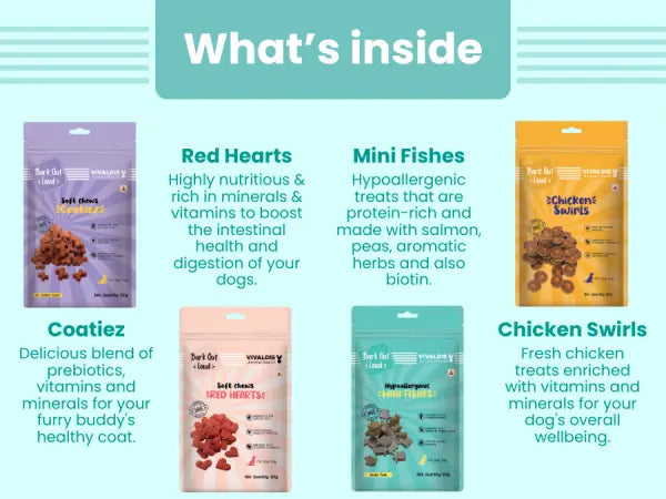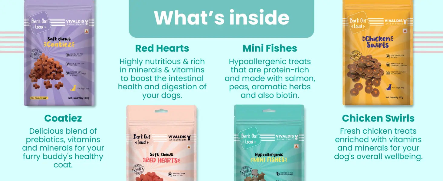 Premium Treat Box – a curated collection of premium treats that brings joy to your furry friend while supporting their health. This delightful box features four carefully selected treats that pamper your pet and maintain their immunity, coat, and skin.